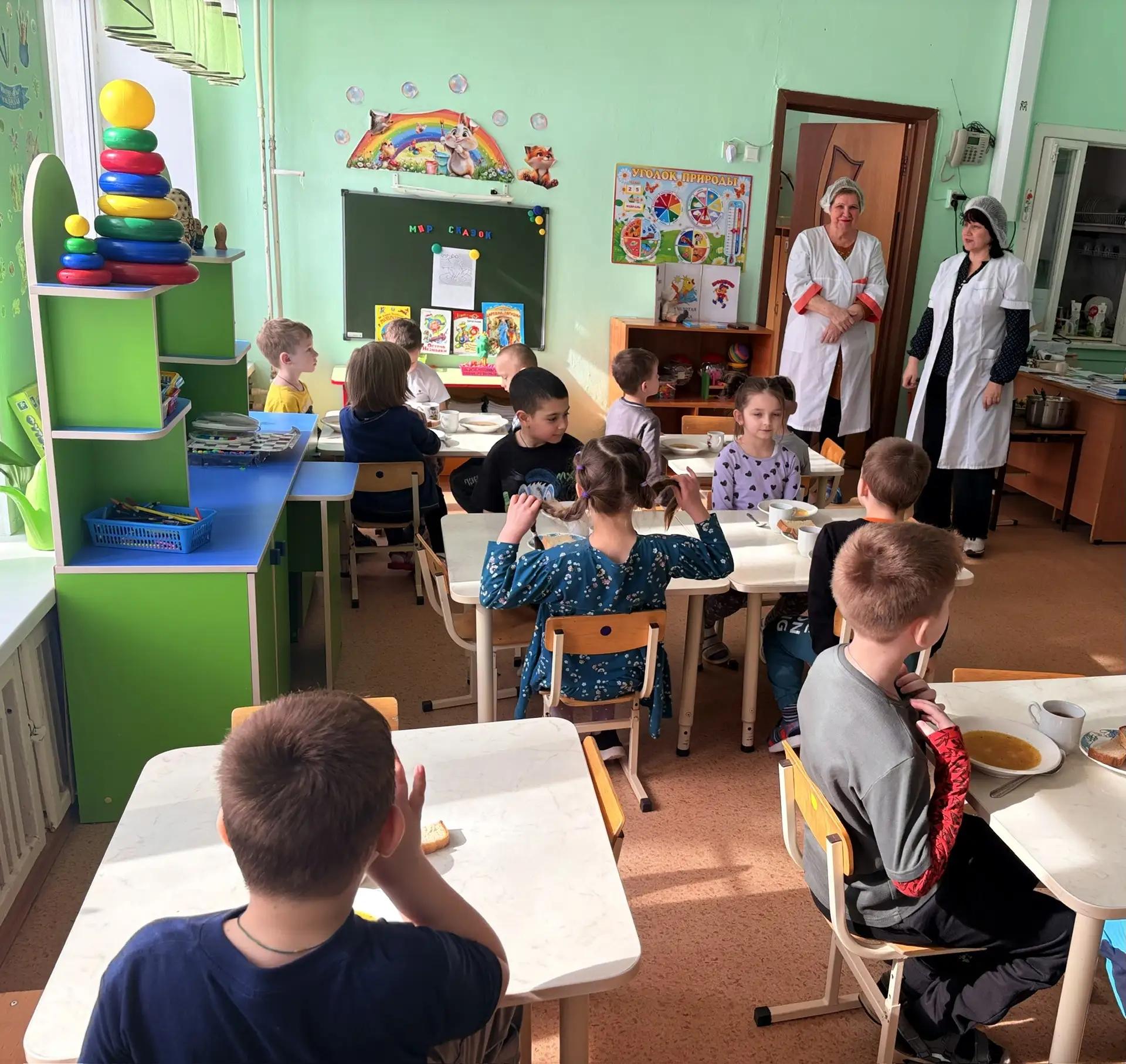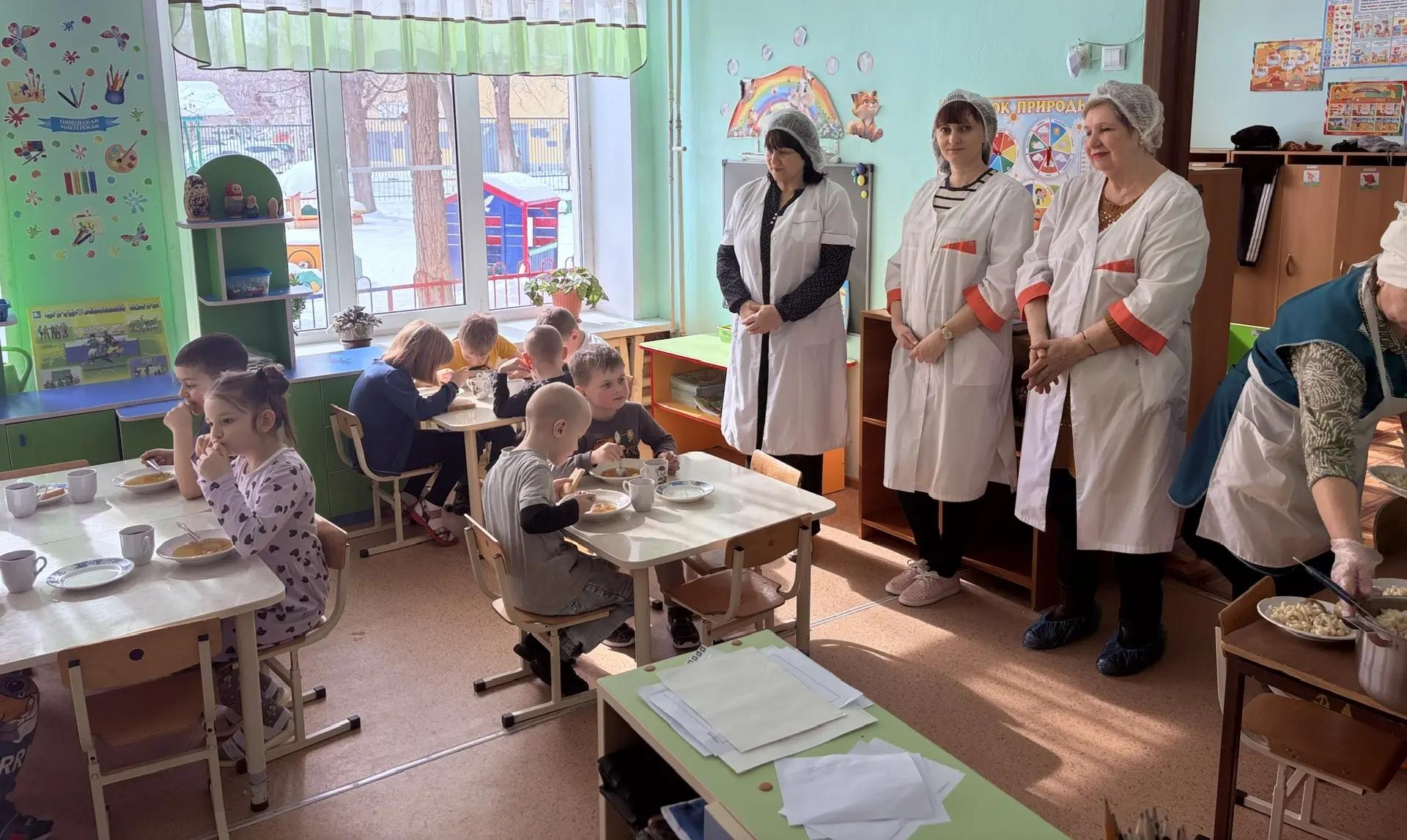 Пищеблок обеспечен необходимым технологическим оборудованием, мебелью, хозяйственно-бытовым (уборочным) инвентарем с маркировкой. Разделочные столы, доски и ножи имеют соответствующую маркировку (сырая, вареная продукция). Посуда для приготовления пищи без повреждений (сколов, трещин эмали), имеется в достаточном количестве. Условия мытья посуды и ее хранения, состояние и количество посудомоечных ванн соответствует требованиям. Организованны места для приема пищи, мытья и хранения посуды.